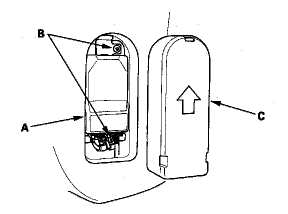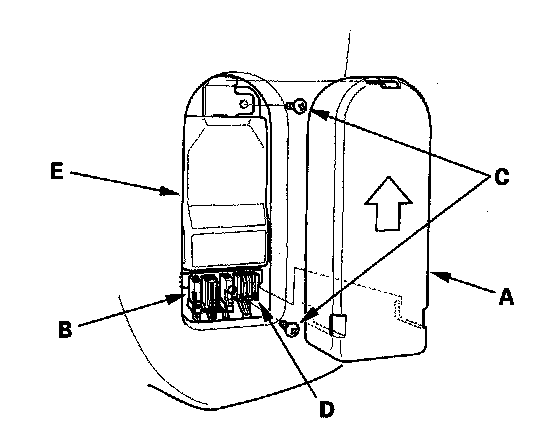 1. Place the new ODS unit (A) on the seat-back frame. Tighten the three screws (B), and connect the ODS harness 18P connector D and sensor connectors to the ODS unit. Reinstall the cover (C).