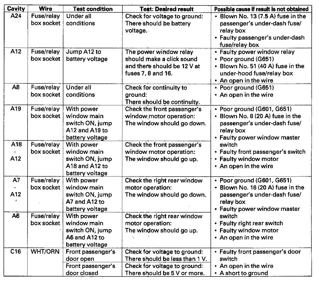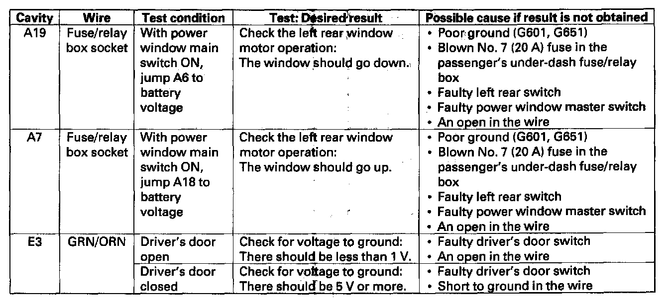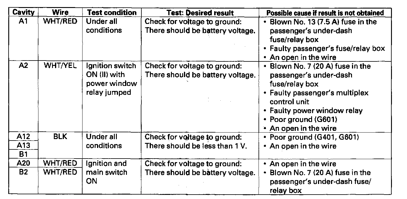 Home >> Honda >> 2006 >> Pilot 2WD V6-3.5L >> Repair and Diagnosis >> Windows and Glass >> Relays and Modules - Windows and Glass >> Power Window Control Module >> Testing and Inspection >> Pinout Values and Diagnostic Parameters >> Control Unit Input Test