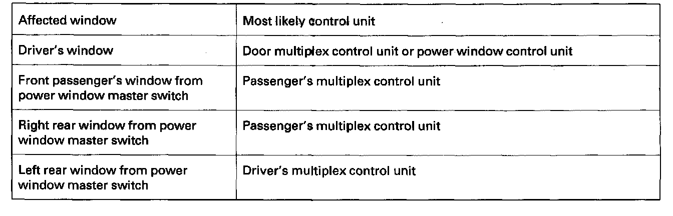 13. If all the input tests prove OK, one of the control units must be faulty. Substitute a known-good control unit for the one that is most likely at fault using the chart given, then check the system. If the system works properly, the original control unit is faulty; replace it. If there is still a malfunction, substitute a known-good control unit for the next most likely unit to be at fault, and recheck. If the system works properly, the original unit is fault; replace it.
