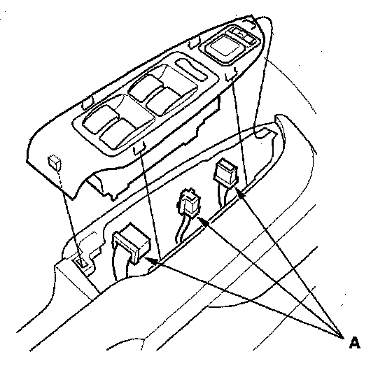 2. Disconnect the power mirror and power window switch connectors (A).
