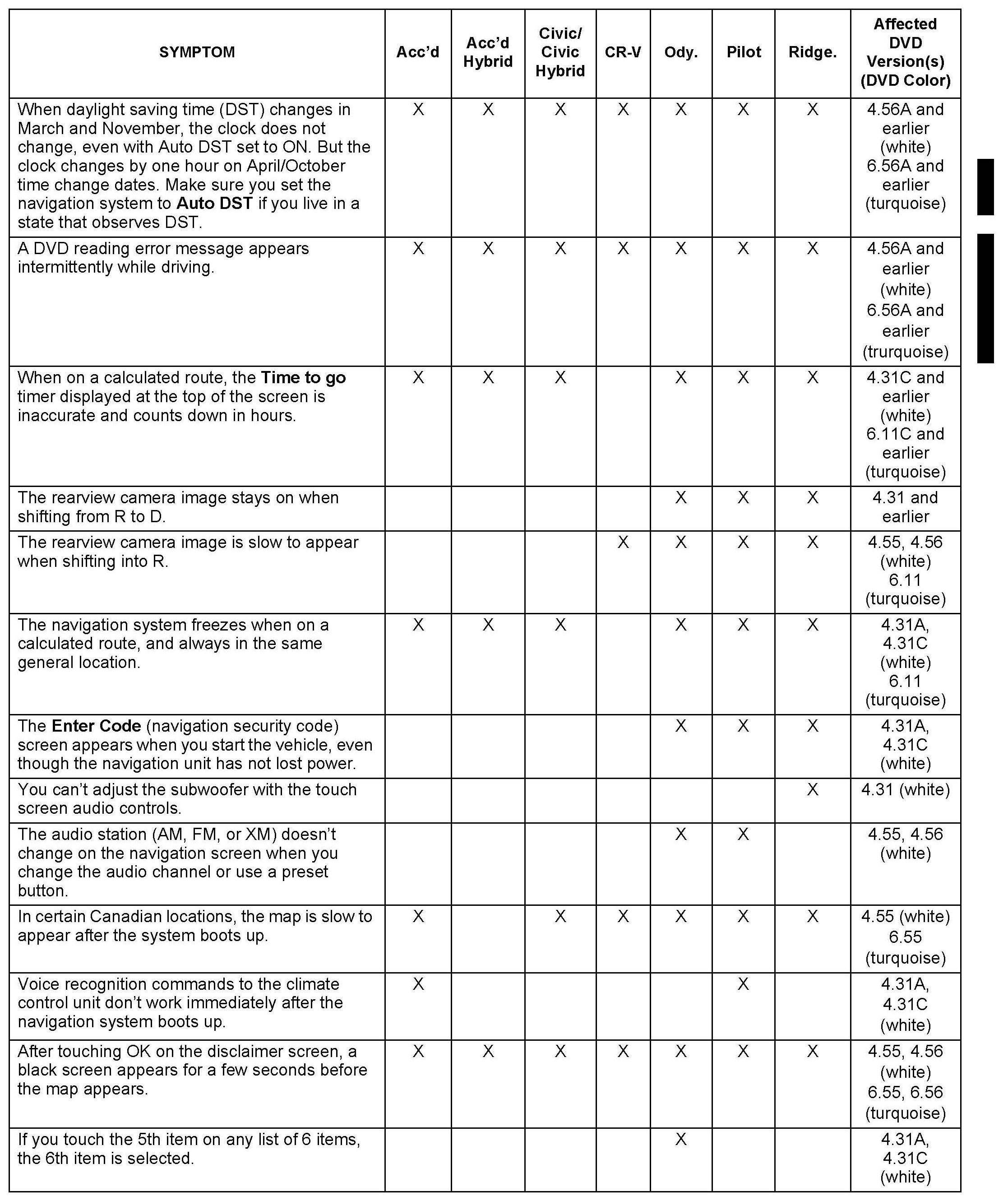 ^ If the customer complaint is not in the list, this bulletin may not apply. Troubleshoot the navigation system using normal troubleshooting procedures, and check the iN for more information.