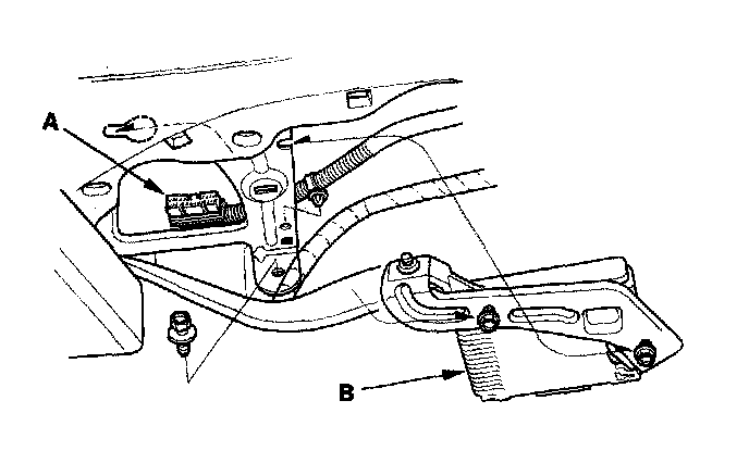 3. Remove the bolts and the engine mount control unit (B).