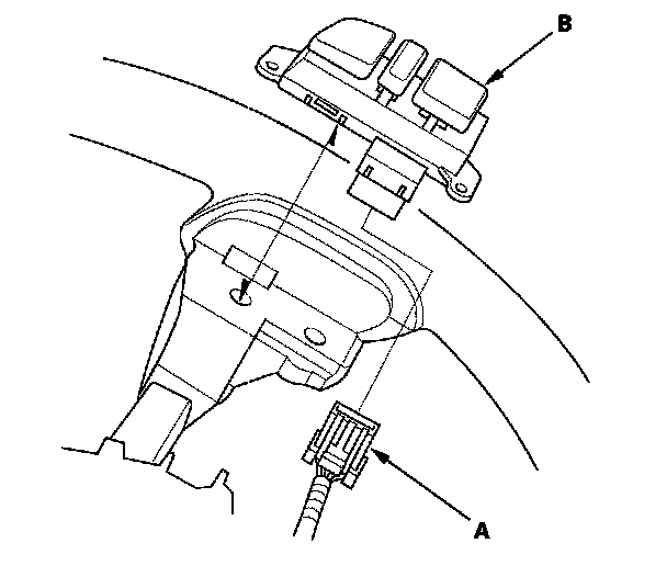 4. Disconnect the 7P connector (A), then remove the cruise control set/decel, resume/accel, cancel switch (B).