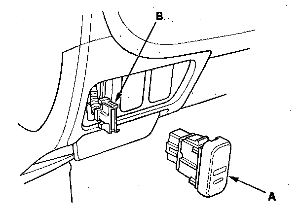 1. Release the clips of the cruise control main switch, and push the cruise control main switch (A) out of the driver's dashboard lower cover.