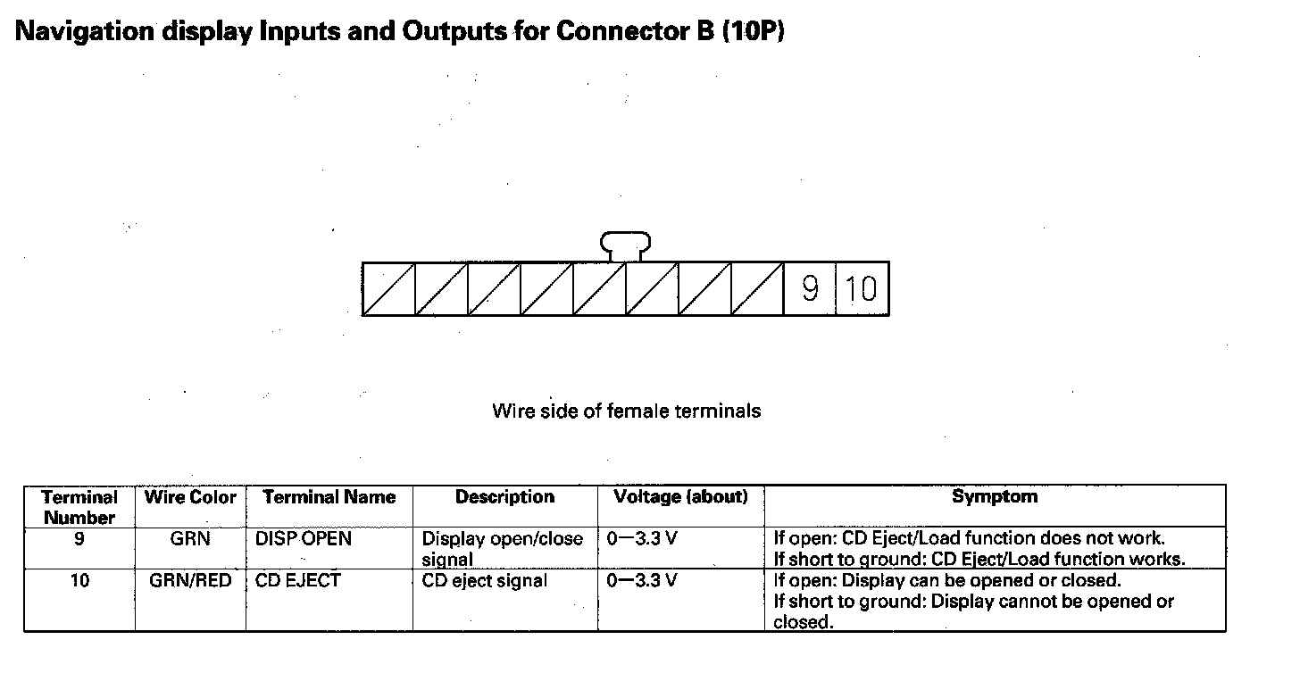 Navigation Display Inputs And Outputs For Connector B (10P):