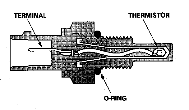 The ECT sensor is a temperature dependent resistor (thermistor). The resistance of the thermistor decreases as the engine coolant temperature increases.