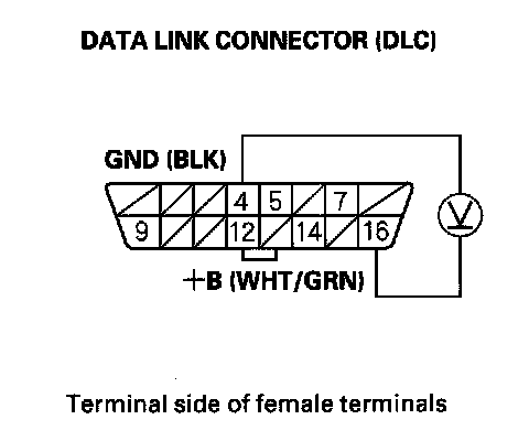 2. Measure voltage between DLC terminals No. 4 and No.16.
