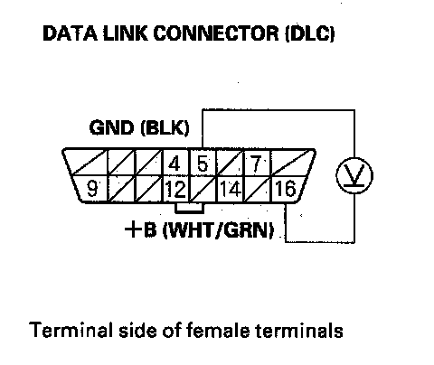 3. Measure voltage between DLC terminals No. 5 and No.16.