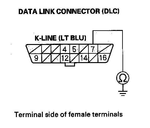 9. Check for continuity between DLC terminal No. 7 and body ground.
