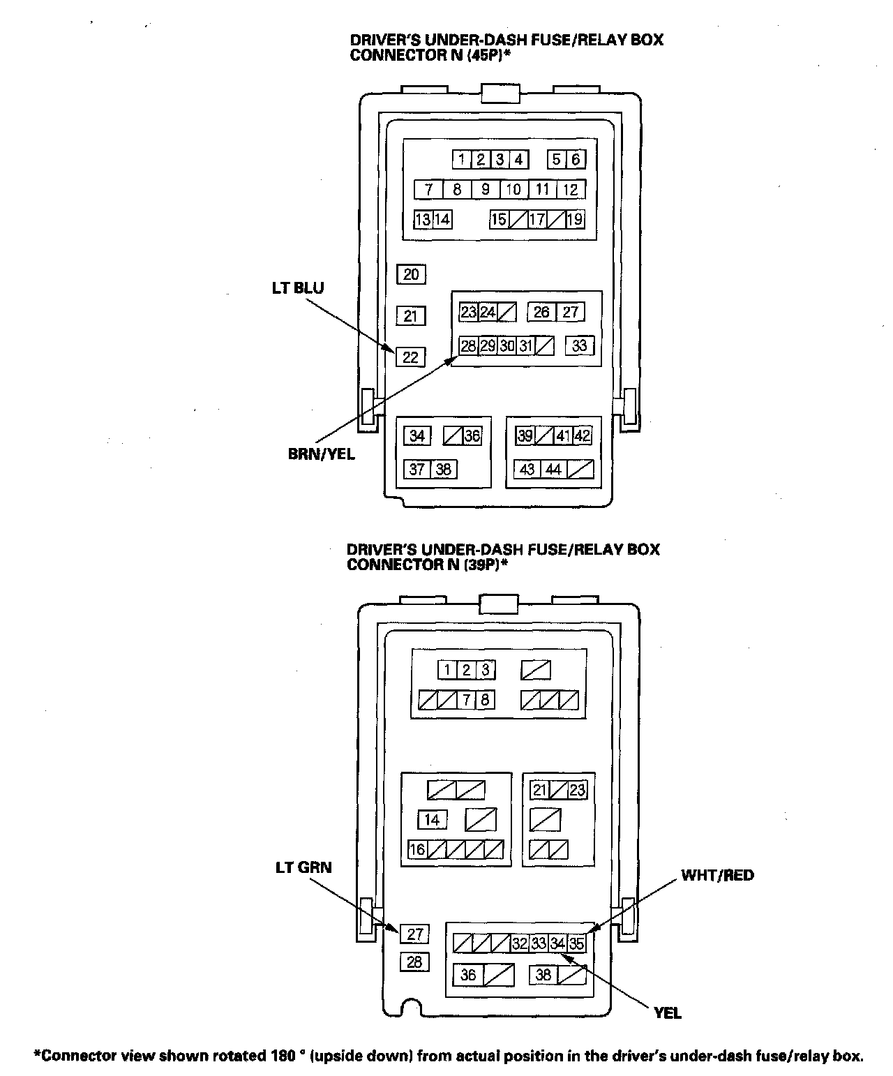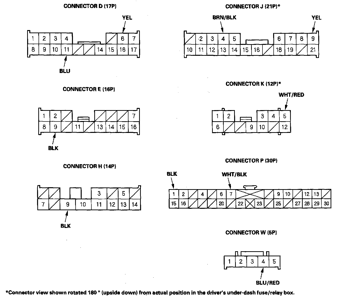 5. Reconnect the connectors to the driver's under-dash fuse/relay box, and make sure these input tests at the appropriate connectors on the driver's under-dash fuse/relay box.