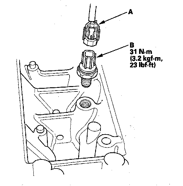 3. Disconnect the knock sensor 1P connector (A), then remove the knock sensor (B).