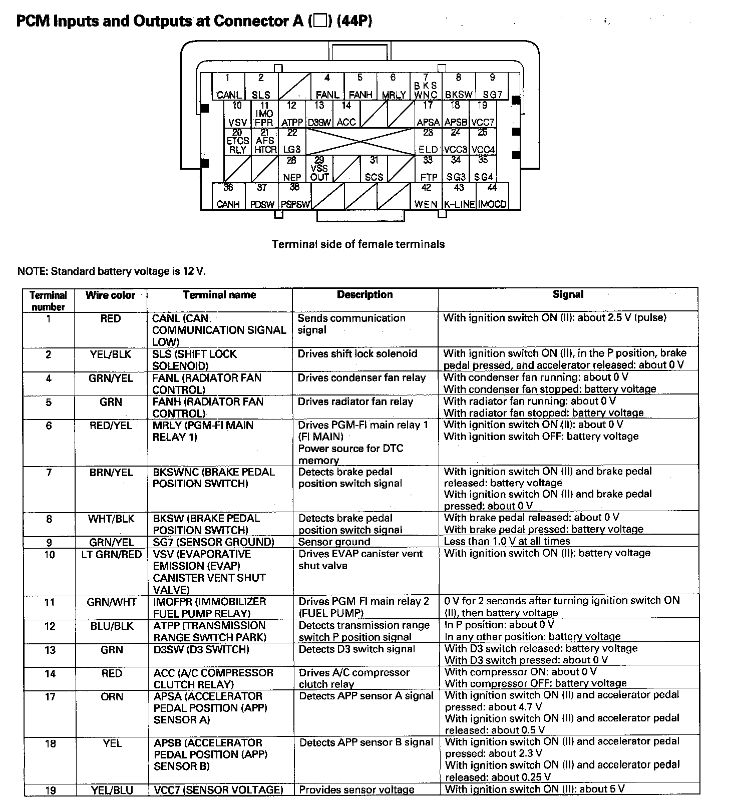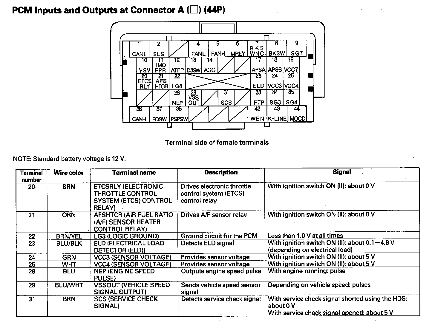 PCM Inputs and Outputs at Connector A (44P) Part 2: