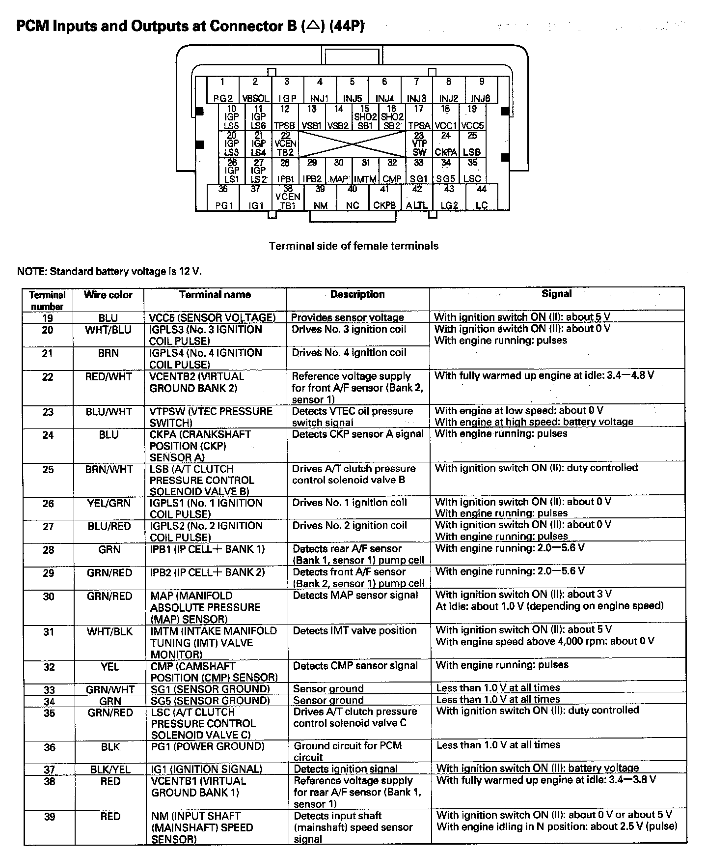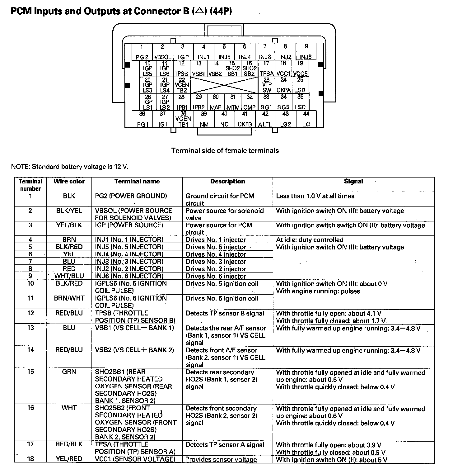 PCM Inputs and Outputs at Connector B (44P) Part 1: