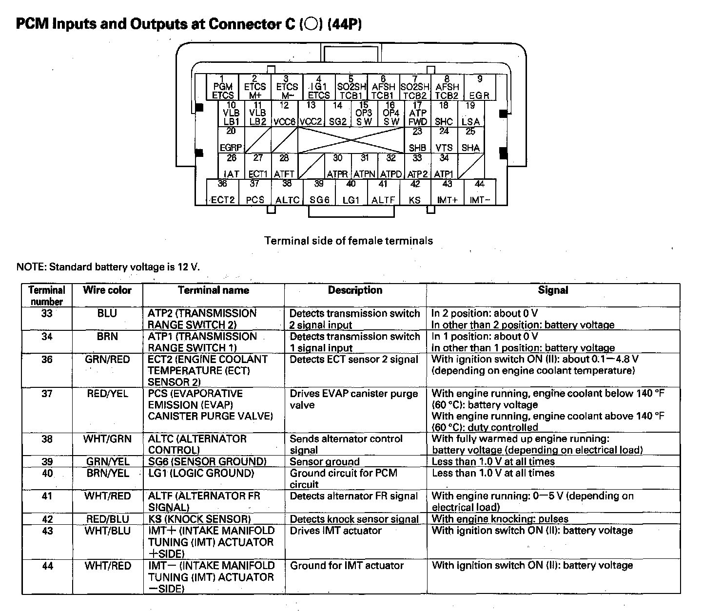 PCM Inputs and Outputs at Connector C (44P) Part 1: