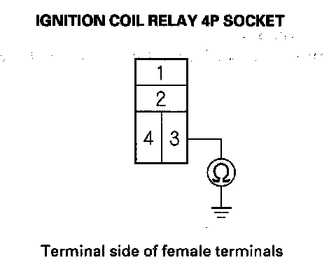 7. Check for-continuity between ignition coil relay 4P socket terminal No. 3 and body ground.
