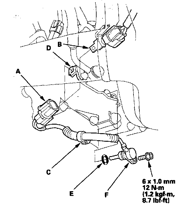 6. Install a new O-ring (E) on the new ATF temperature sensor (F).
