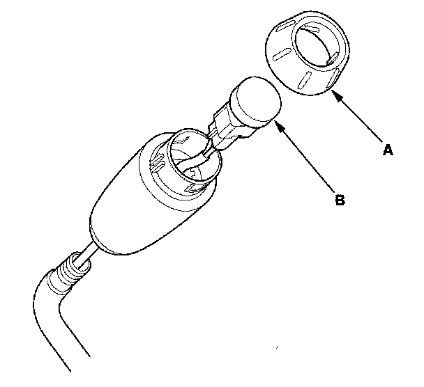 18. Install the D3 switch (A) in the shift lever knob (B).