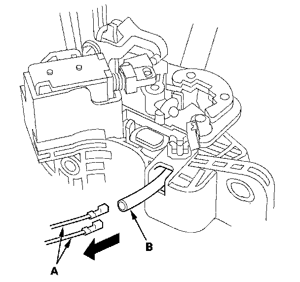 11. Pull the D3 switch harness wires (A) from shift lever bracket side, and remove the harness wires. Leave the harness tube (B) and remove only the wires.