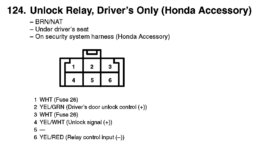 124. Unlock Relay, Driver's Only (Honda Accessory):