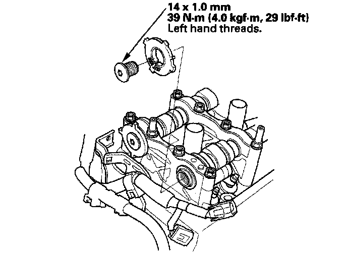 2. Hold the camshaft with an open-end wrench, then loosen the bolt.