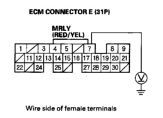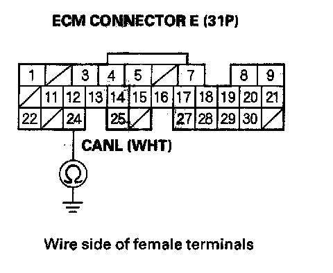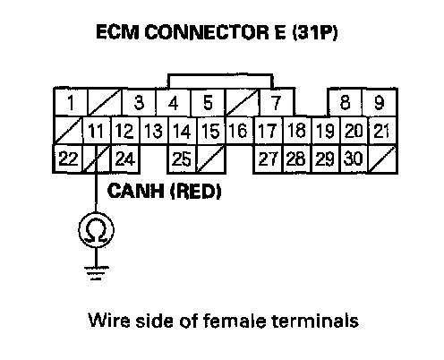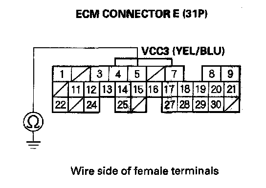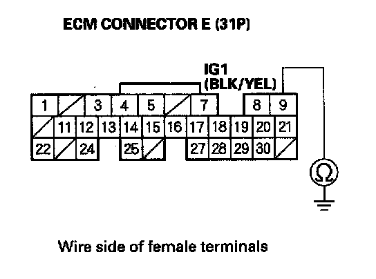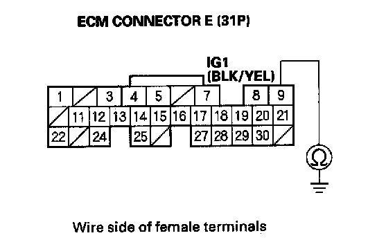 31. Check for continuity between ECM connector terminal E24 and body ground.