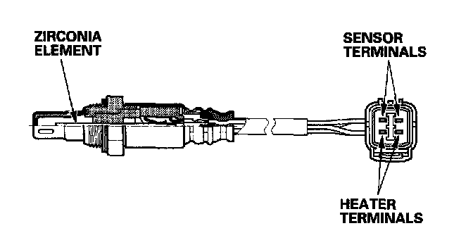 The secondary HO2S detects the oxygen content in the exhaust gas downstream of the three way catalytic converter (TWO, and sends signals to the ECM which varies the duration of fuel injection accordingly. To stabilize its output, the sensor has an internal heater. The ECM compares the HO2S output with the A/F sensor output to determine catalyst efficiency. The secondary HO2S is located on the TWC.