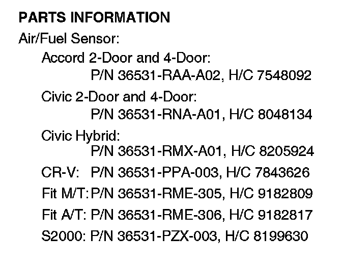 The PGM-FI software has been changed to delay A/F sensor heater operation when there is a high probability of moisture on the A/F sensor.