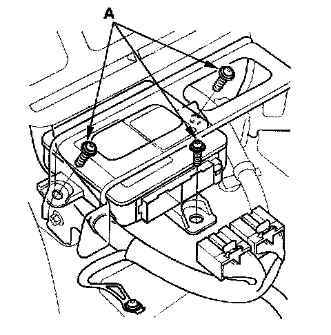 5. Remove the three Torx bolts (A) from the SRS unit, then pull out the SRS unit from the bracket.