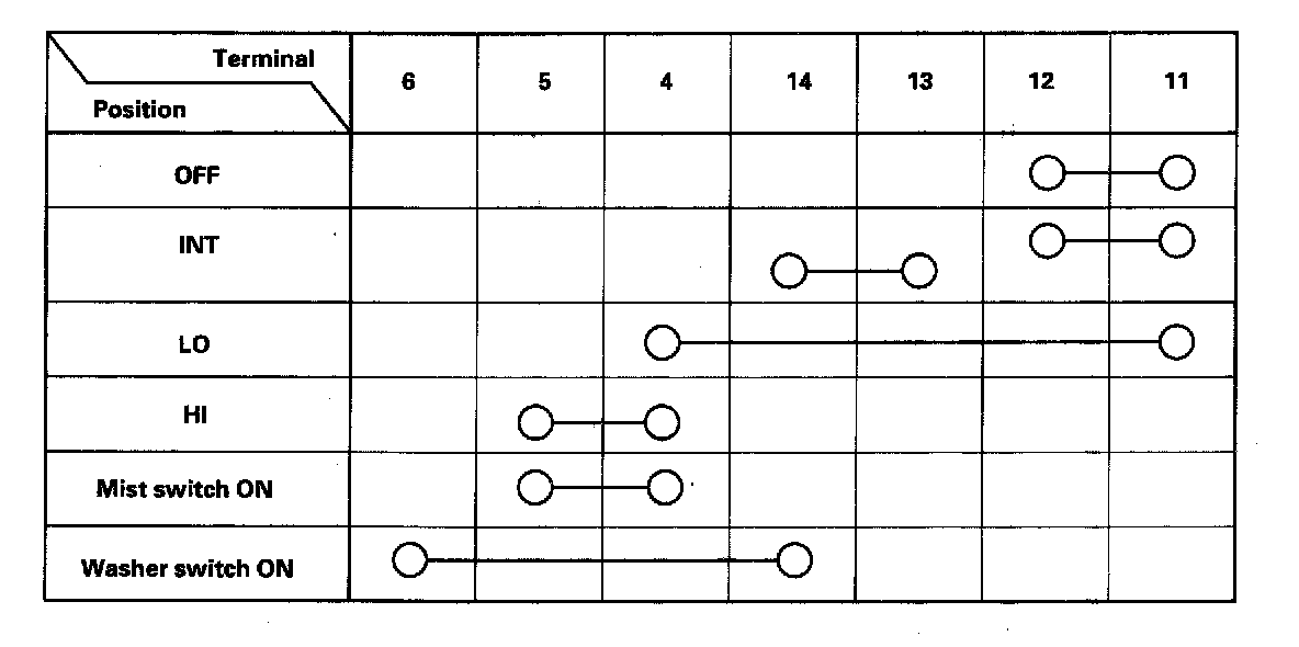 4. Check for continuity between the terminals in each switch position according to the table. If the continuity is not as specified, replace the switch.