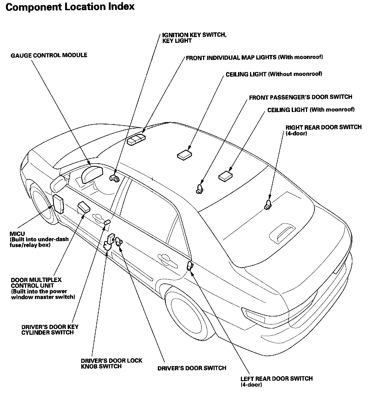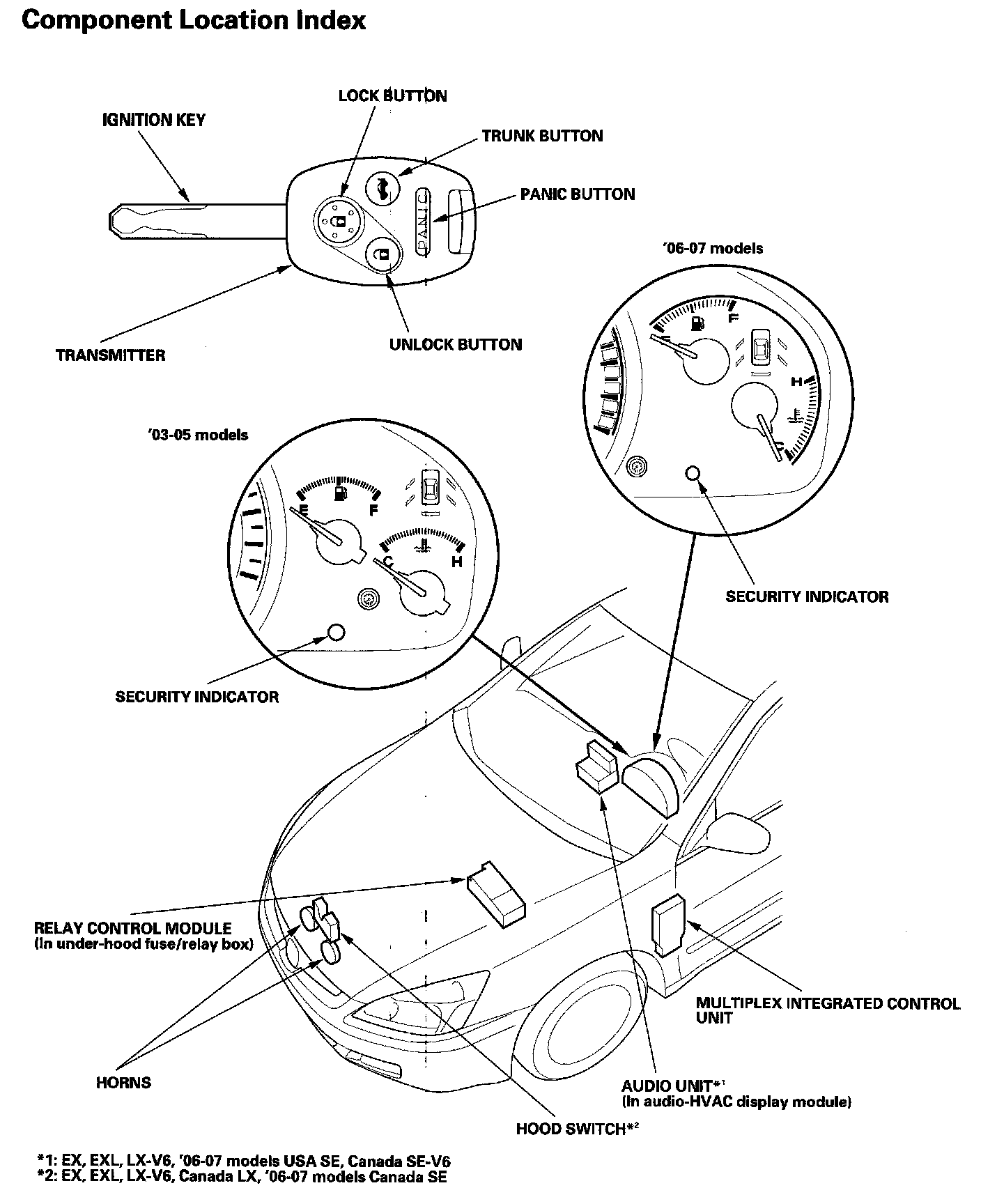 Keyless/Power Door Locks/Security System Component Location Index: