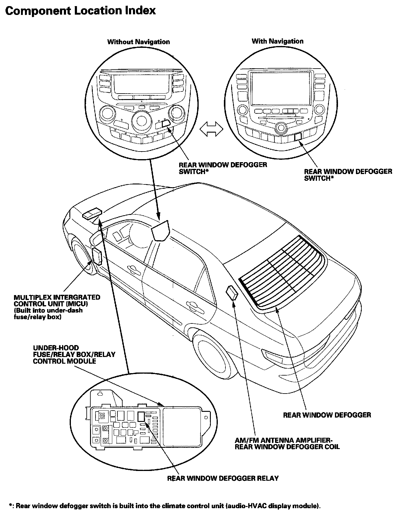 Rear Window Defogger Component Location Index: