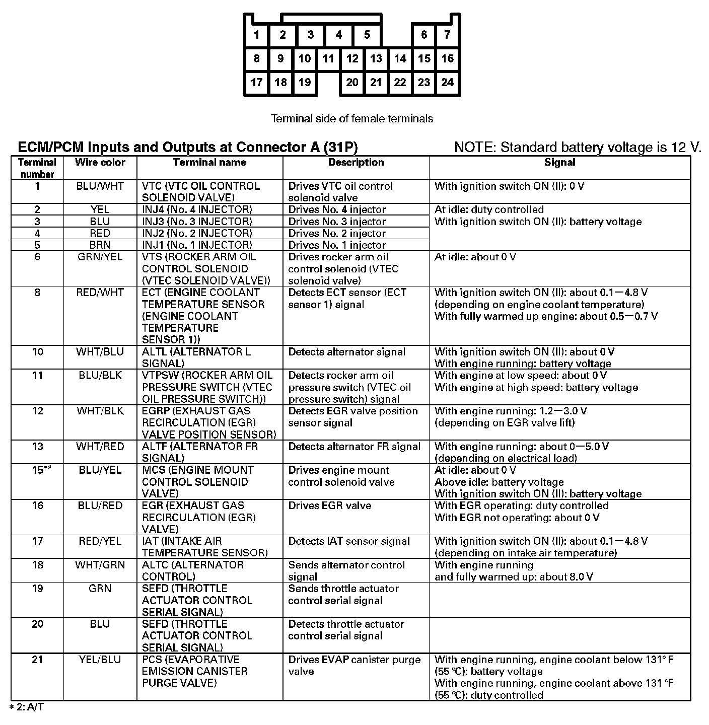 ECM/PCM Inputs And Outputs at Connector A (31P) Part 1: