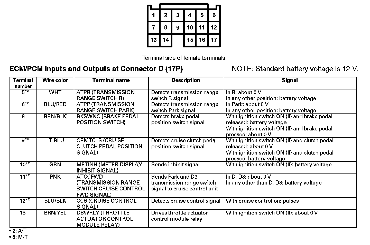 ECM/PCM Inputs And Outputs at Connector D (17P):