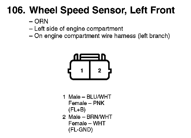 106. Wheel Speed Sensor, Left Front:
