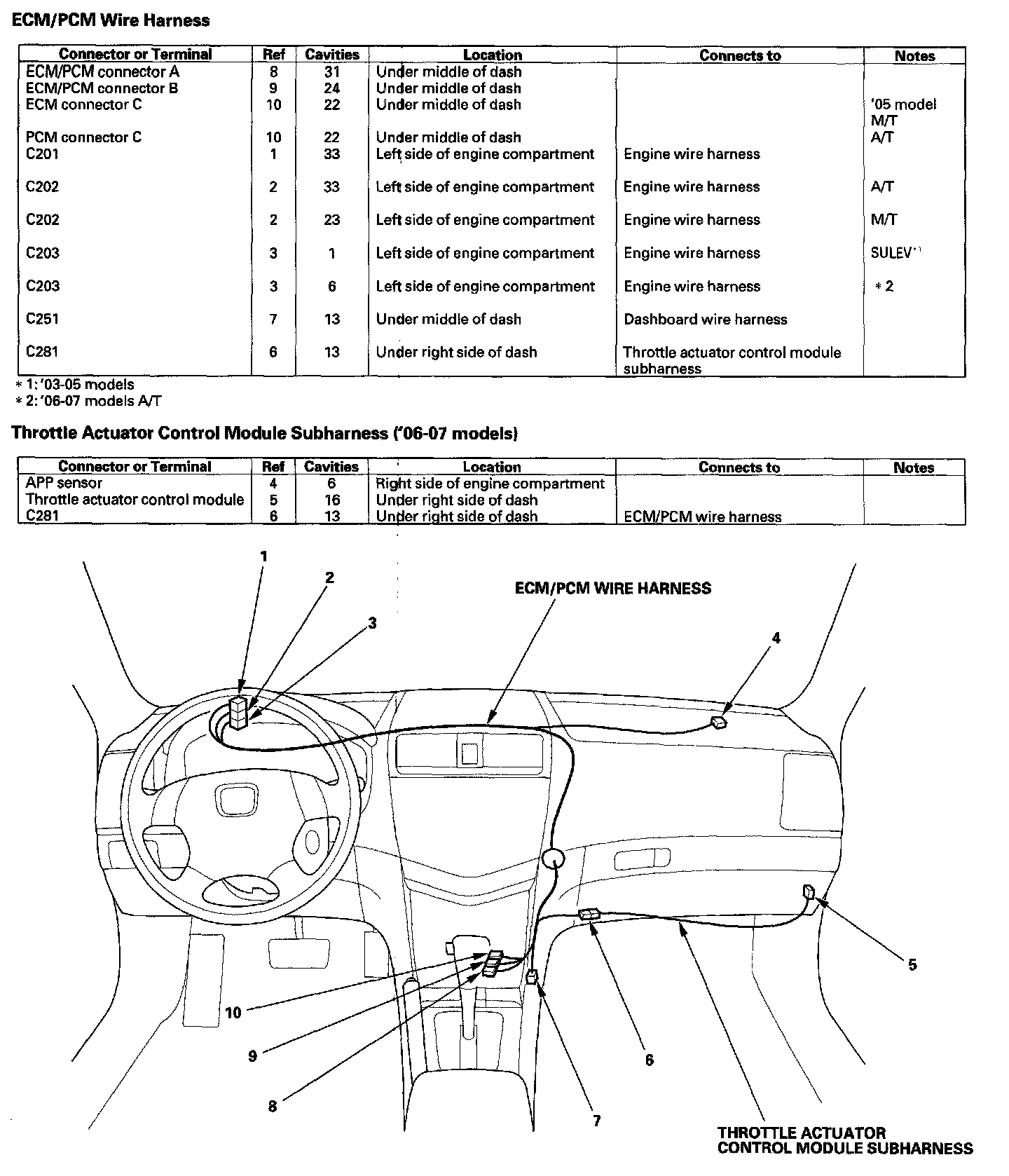 ECM/PCM Wire Harness/Throttle Actuator Control Module Subharness: