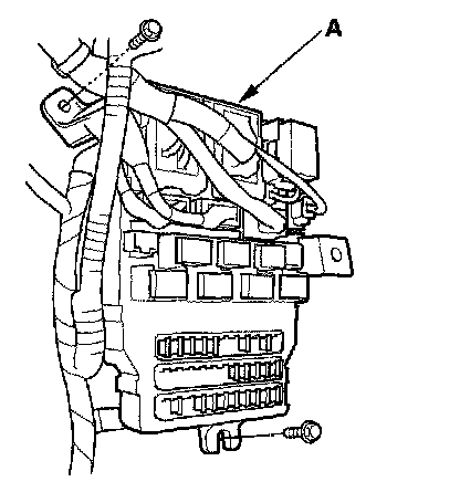 5. Disconnect the connectors from the fuse side of the under-dash fuse/relay box (A).
