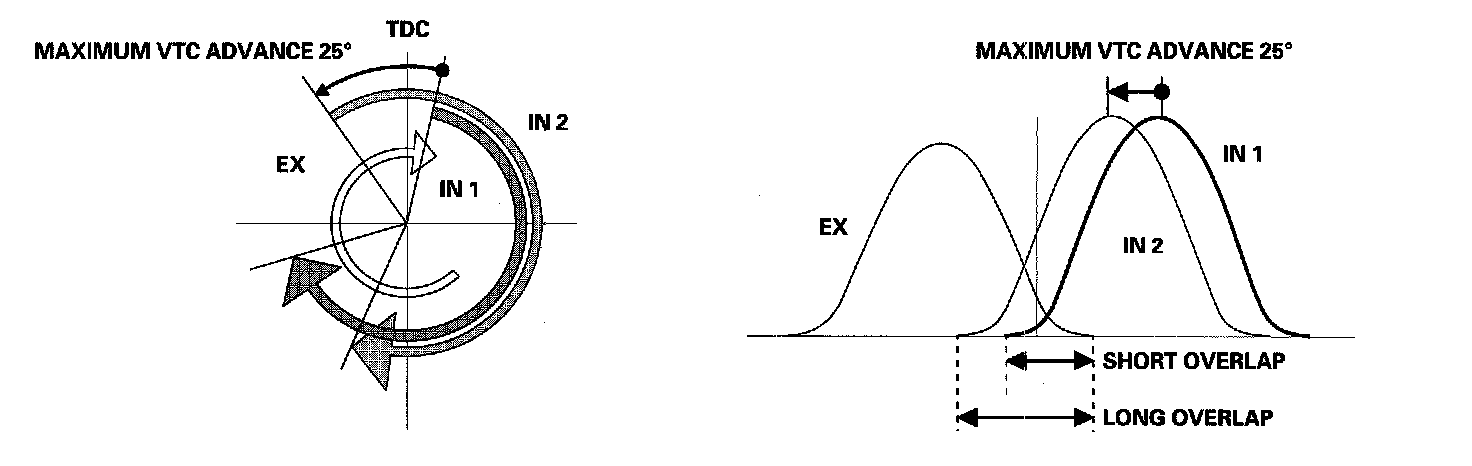 - The VTC system makes continuous intake valve timing changes based on operating conditions.