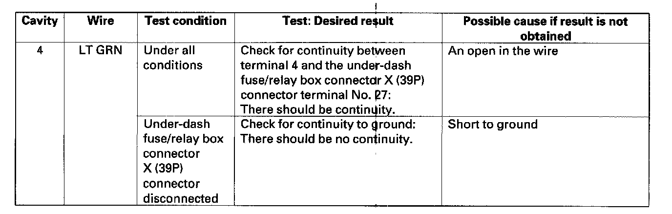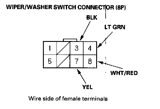 5. Disconnect the connector from the wiper/washer switch, and make these input tests at the connector.