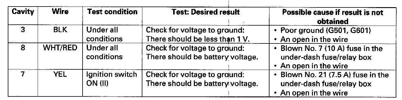 4. Reconnect the connector, and make these input tests at the connector.