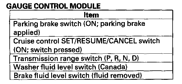 - DTC 5 only (no other DTCs present): Go to the gauge control module input test. If all inputs are OK, substitute a known-good gauge control module and then a MICU, one at a time, and then check for DTCs. If a DTC recurs after a substitution, replace that unit.