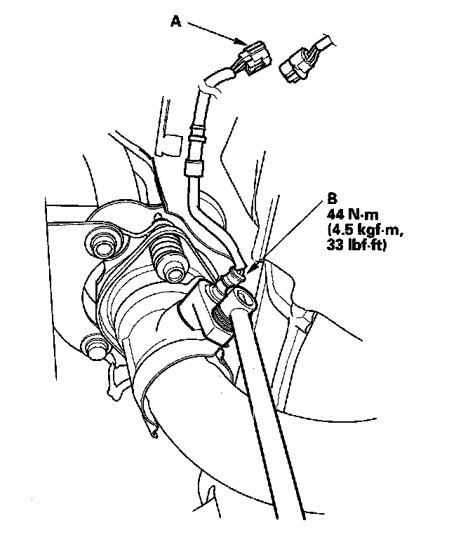 1. Disconnect the A/F sensor 4P connector (A), then remove the A/F sensor (B).