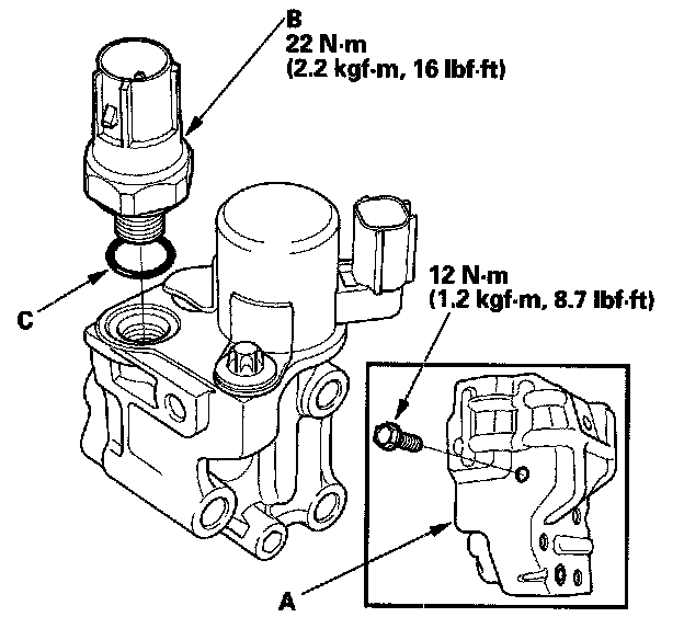 Rocker Arm Oil Pressure Switch (VTEC Oil Pressure Switch) Removal/ Installation1. Remove the rocker arm oil control valve (VTEC solenoid valve).