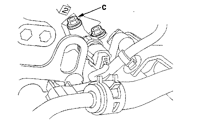 11. Shift to the 2 position, and measure the 2nd clutch pressure at the 2nd clutch pressure inspection hole (C) while holding engine speed at 2,000 rpm.