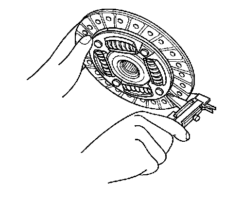 Measure the clutch disc thickness. If the thickness is less than the service limit, replace the clutch disc.