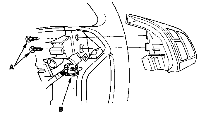 2. Remove the screws (A). Disconnect the 12P connector (B), then remove the cruise control combination switch.