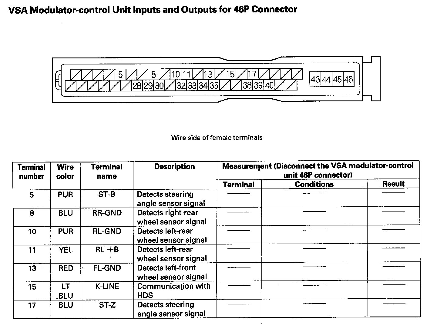 VSA Modulator-control Unit Inputs and Outputs for 46P Connector (Part 1):