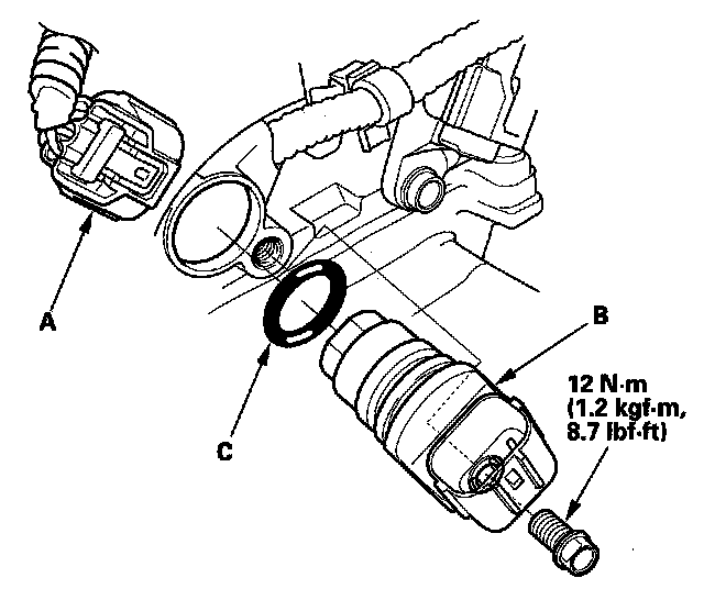 4. Install the parts in the reverse order of removal with a new O-ring (C).