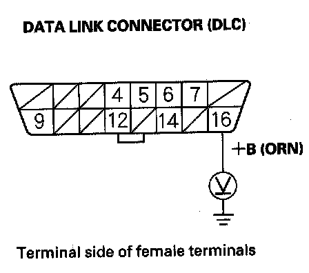 25. Measure voltage between DLC terminal No. 16 and body ground.