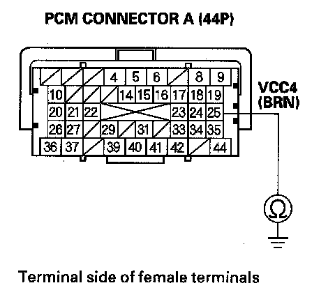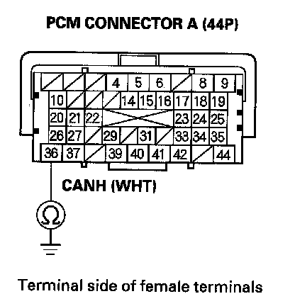 32. Check for continuity between PCM connector terminal A36 and body ground.