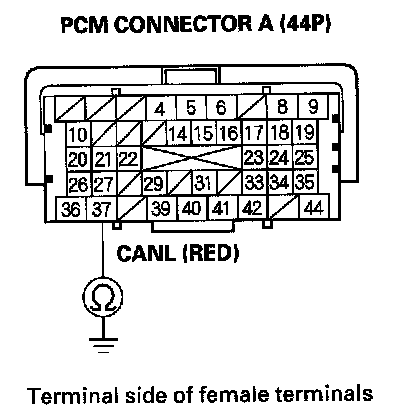 34. Check for continuity between PCM connector terminal A37 and body ground.